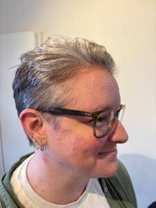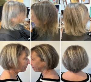 Jackie wanted more volume, so we opted for a short cut with soft layers to create the appearance of thicker hair.